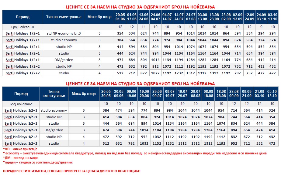 *Понудата е исклучиво за сопствен превоз и нема можност за резервација на автобуски превоз од Македонија!
