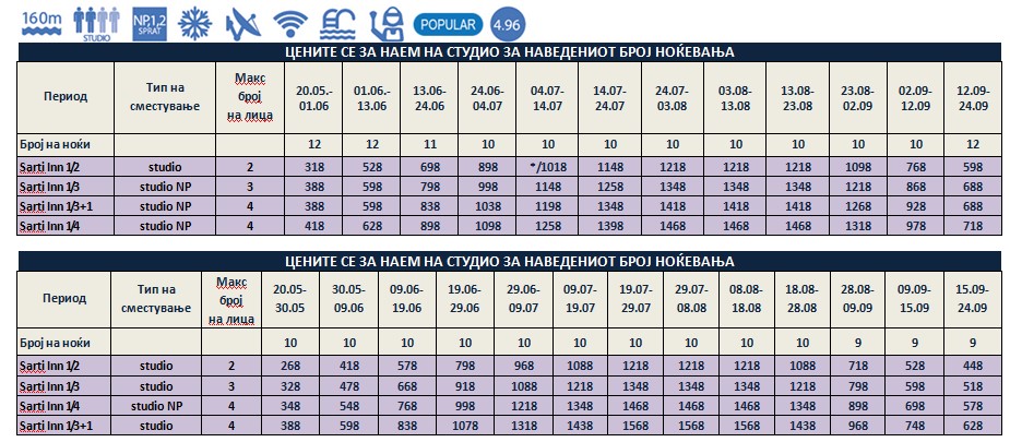*Понудата е исклучиво за сопствен превоз и нема можност за резервација на автобуски превоз од Македонија!