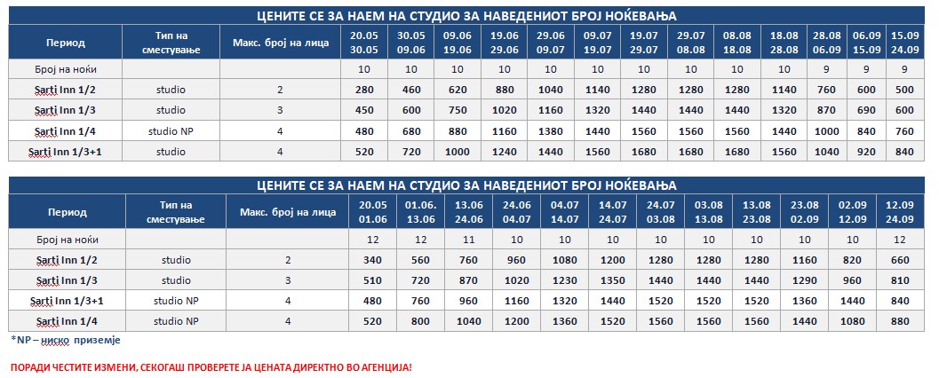 *Понудата е исклучиво за сопствен превоз и нема можност за резервација на автобуски превоз од Македонија!