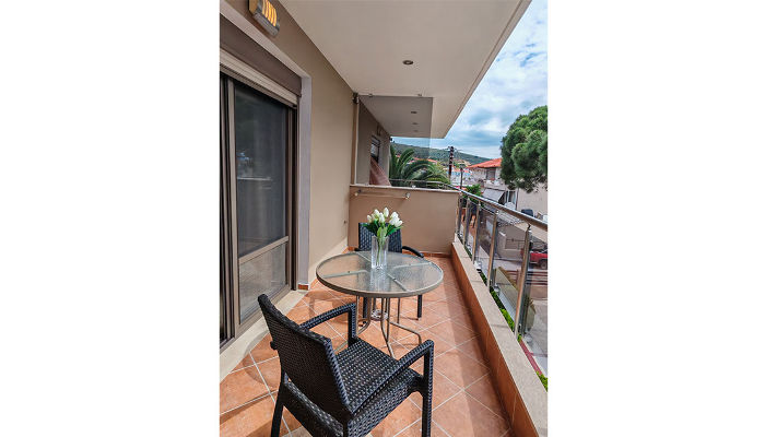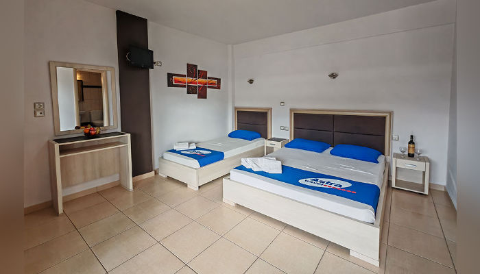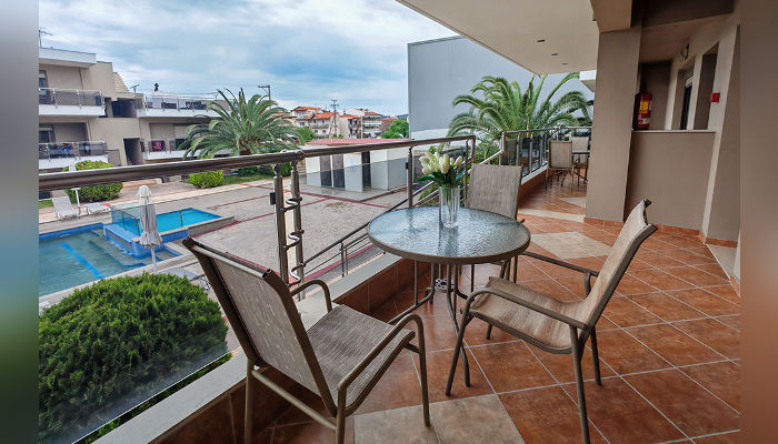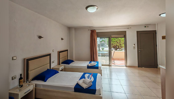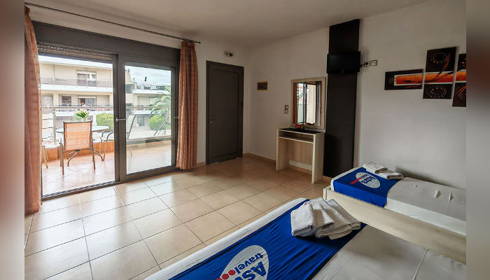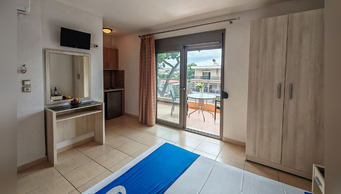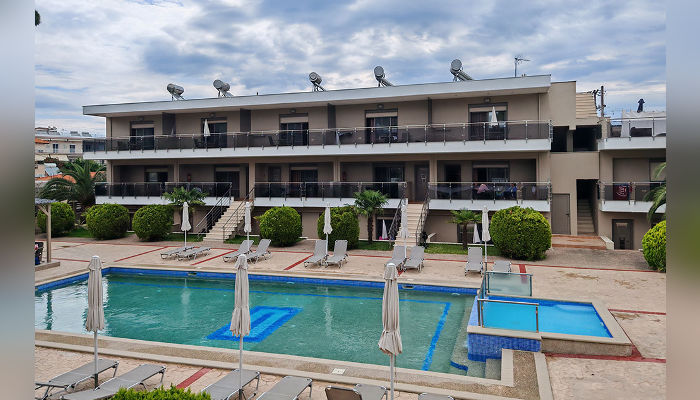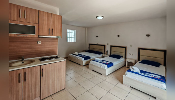Sarti Inn е Apparthotel со базен. Се наоѓа на 160 м од плажата. Студијата се пространи и за 2, 3 или 4 лица се наоѓаат во ниско приземје, прв или втор кат. Сите имаат SAT TV, бежичен интернет, за чија брзина агенцијата не може да гарантира и клима уред чие користење е вклучено во цената. Чистењето и менувањето постелнина во студијата се прави на секои 3-4 дена. Студијата се опремени со мал фрижидер, решо, пешкири, комарници, чадори за сонце на балконите.