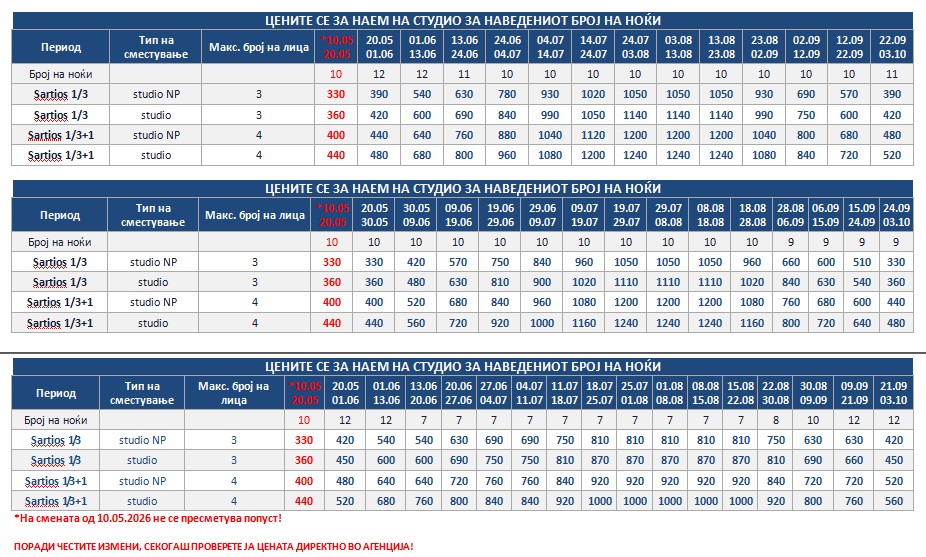*Понудата е исклучиво за сопствен превоз и нема можност за резервација на автобуски превоз од Македонија!