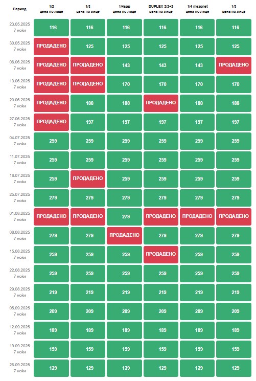 • За сопствен превоз се одбива 20 евра од редовната цена по лице.