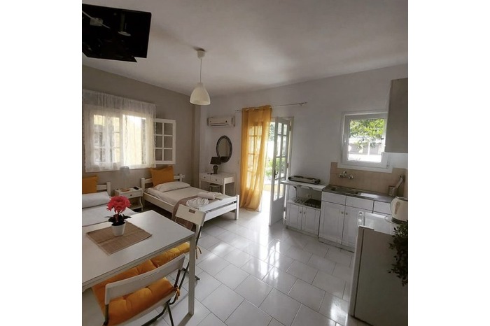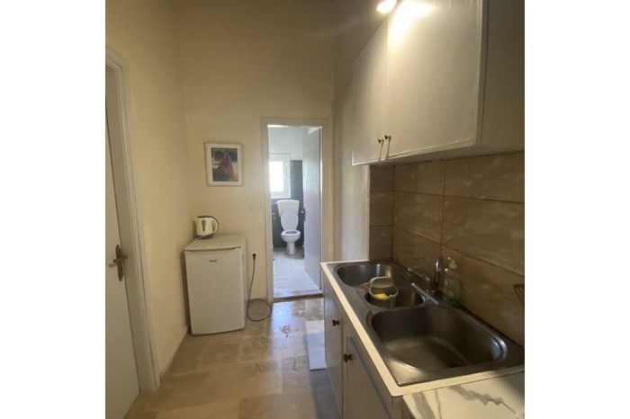 Стдуио бр. 1 – 1/3 студио – Располага со еден брачен и еден единечен кревет, основно опремена кујна и тоалет.