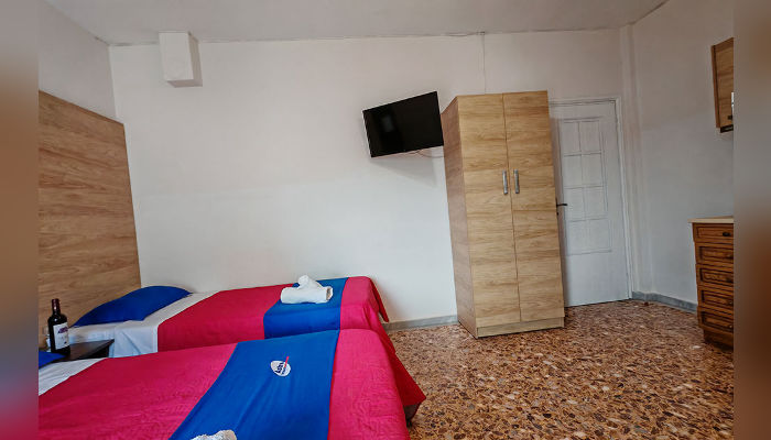 SISSY – Се наоѓа на 150 м од морето, над фудбалското игралиште, и на 300м од градската плажа, во непосредна близина на добро снабден маркет и таверни. Во понуда се студија за 2 до 3 лица, како и апартмани за 5 лица. Сите имаат комарници, ТВ, сигнал за користење бежичен интернет, чија брзина и проток агенцијата не може да ја гарантира. Користењето на клима уредот се доплаќа на лице место. Има пешкири.