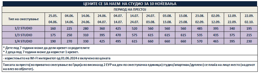 *Понудата е исклучиво за сопствен превоз и нема можност за резервација на автобуски превоз од Македонија!