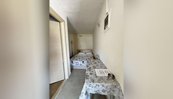Студио број 6 (1/2) – високо приземје. Студиото располага со еден брачен кревет и мала комплетно опремена кујна (кујнски инвентар, решо и мал фрижидер), клима уред, ТВ и сопствен тоалет со туш. Од студиото се излегува во сопствено дворче кое располага со маса и столови.