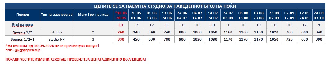 *Понудата е исклучиво за сопствен превоз и нема можност за резервација на автобуски превоз од Македонија!