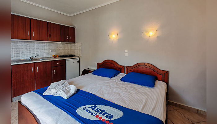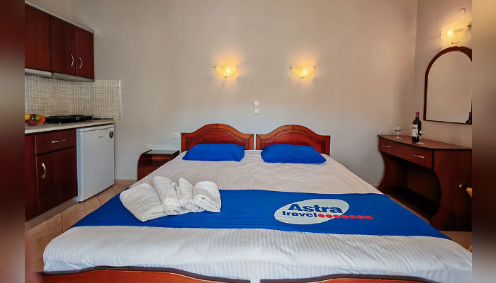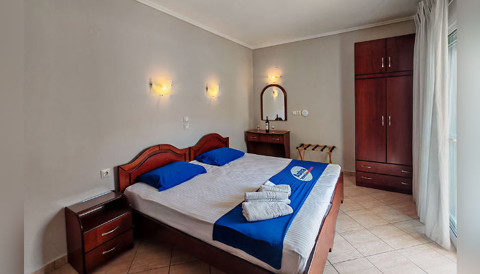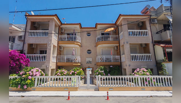 SPANOS – Ова е една од поубавите куќи во новиот дел на Сарти и се наоѓа на само 20 м од плажа. Во понудата има студија со поглед кон улицата. Двокреветните студија се наоѓаат во ниско приземје и на првиот кат. Опремени се со фрижидер, решо, комарници, озидана туш-када без завеса. Сите имаат SAT TV и бежичен интернет, за чија брзина агенцијата не може да гарантира, како и клима уред чие користење е вклучено во цената во јули и август. Пред куќата има ограничен број паркинг места.