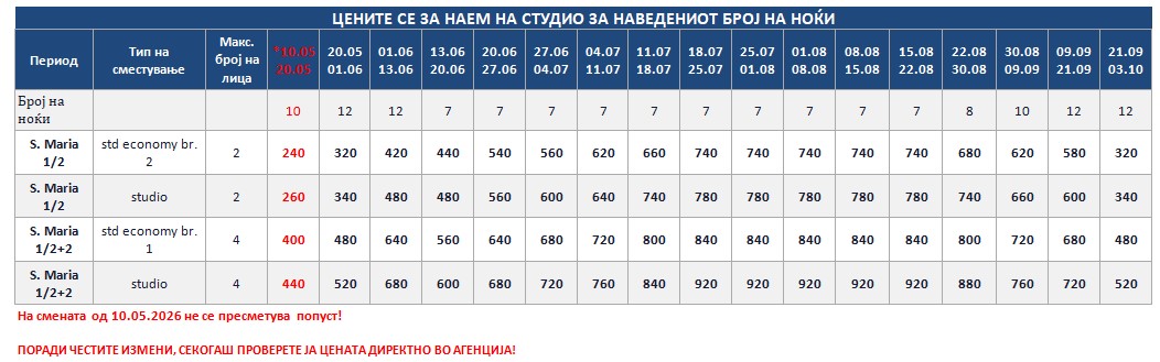 *Понудата е исклучиво за сопствен превоз и нема можност за резервација на автобуски превоз од Македонија!