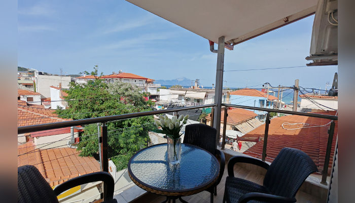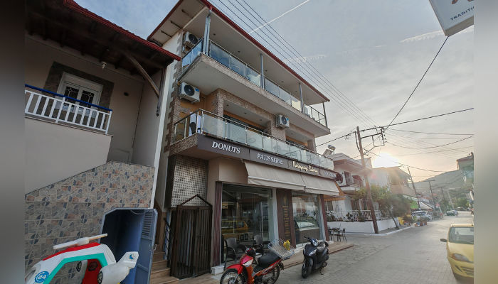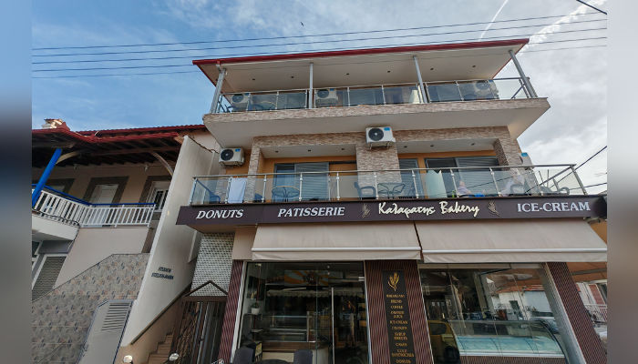 STELIOS MARIA – Се наоѓа во стариот дел на Сарти, на 70 m oд морето. Студијата за 2 и 4 лица се наоѓаат на прв и втор кат. Опремени се со мал фрижидер, решо, комарници, пешкири. Студијата за 2+2 лица се со француски кревет и кревети на кат. Сите имаат SAT TV, бежичен интернет, за чија брзина агенцијата не може да гарантира и клима чие користење е вклучено во цената во јули и август. Студијата на прв кат, бр. 1 со помала квадратура и бр.2 со потесната тераса имаат пониска цена.
