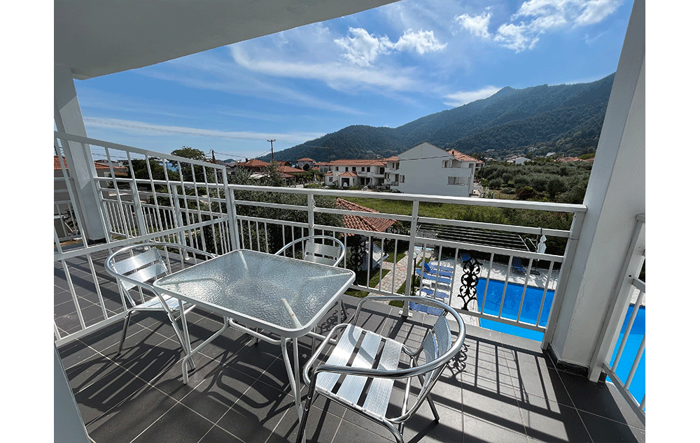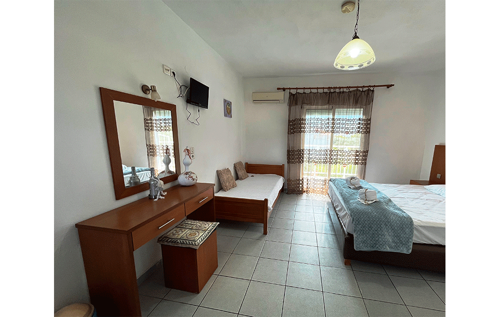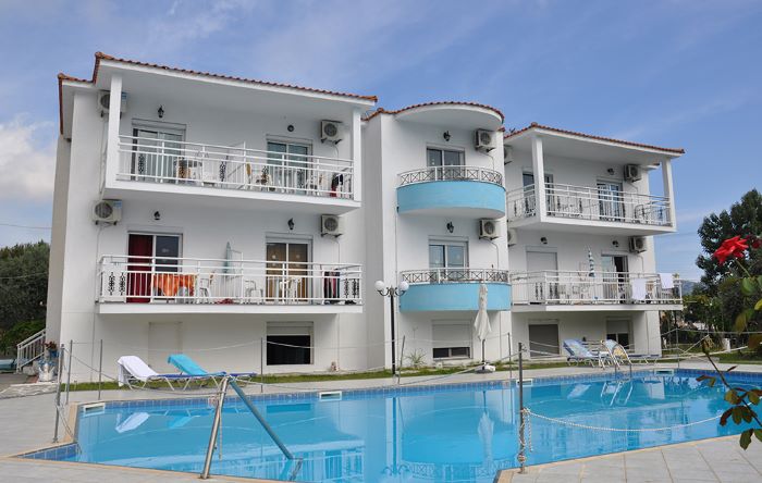 SUZIE се наоѓа на околу 150m од една од најубавите плажи на Тасос, Златната плажа (Golden beach). Куќата има базен со лежалки. Поседува трокреветни студија, сместени на втор кат. Секое студио има чајна кујна, купатило, пешкири, тераса, бежичен интернет, за чија брзина агенцијата не може да гарантира, ТВ, клима уред со доплата на лице место. Најблизок маркет е на 100m оддалеченост.