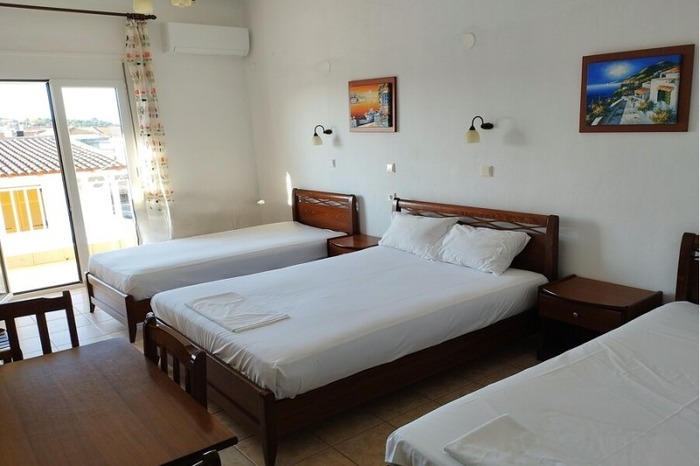 Takis се наоѓа во центарот на летувалиштето Калитеа, на околу 450 метри оддалеченост од плажата. Во понуда се трокреветни и четворокреветни студија на приземје, прв и втор кат, како и шестокреветен апартман на втор кат. Трокреветни полуапартмани (со одделена кујна во засебна просторија) се сместени на првиот кат на објектот во дворот – последните 5 фотографии. Сите сместувачки единици имаат основно опремена кујна, купатило, тераса, ТВ и клима уред, чие користење е вклучено во цената, бежичен интернет, за чија брзина агенцијата не може да гарантира. Замена на постелнината е на половина од смената.