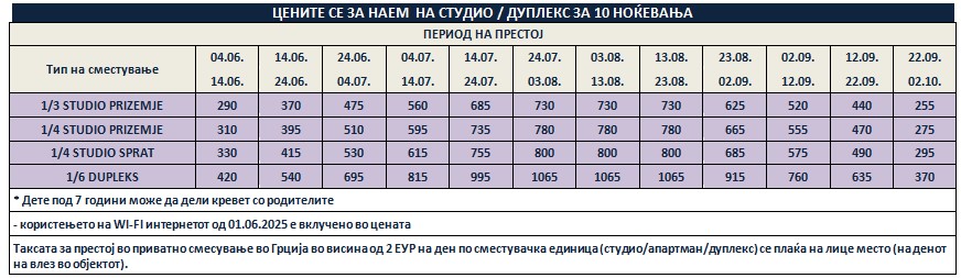 *Понудата е исклучиво за сопствен превоз и нема можност за резервација на автобуски превоз од Македонија!