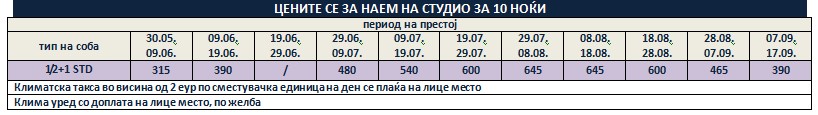 *Понудата е исклучиво за сопствен превоз и нема можност за резервација на автобуски превоз од Македонија!
