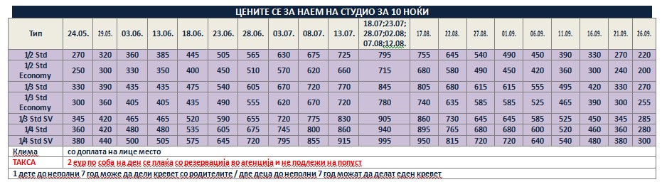 *Понудата е исклучиво за сопствен превоз и нема можност за резервација на автобуски превоз од Македонија!