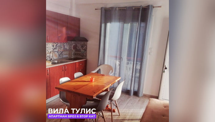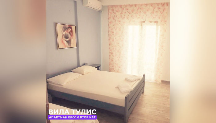 Апп бр.6 (ЗА 4 ЛИЦА) – е апартман на втор кат со поглед на градина и има една спална соба со еден брачен кревет и единечен кревет и посебна кујна каде што има софа на пуштање и единечен кревет. Препорака е за максимум  двајца возрасни и две деца.