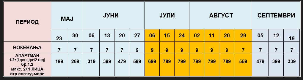 ЦЕНИТЕ ЗА ДАДЕНИТЕ СМЕНИ СЕ ОДНЕСУВААТ ЗА НАЕМ НА АПАРТМАН ЗА 7 и 9 НОЌИ