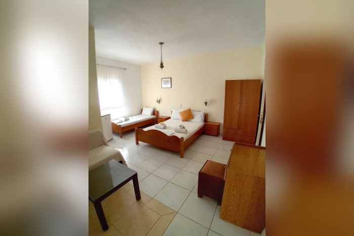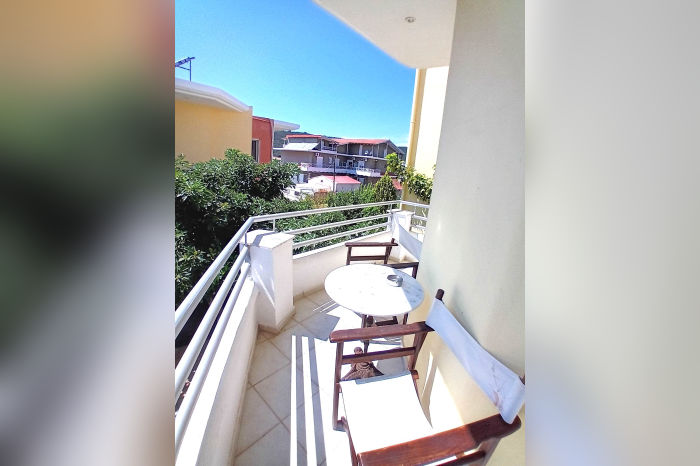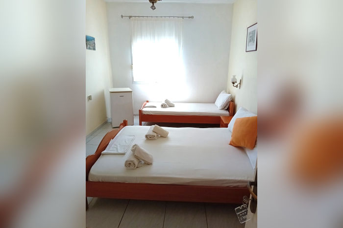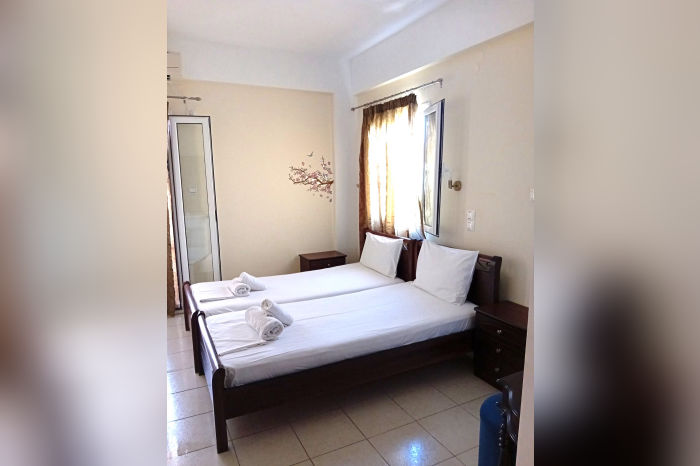 Овој семеен хотел има одличен однос цена / квалитет. Нуди услуга полупансион (појадок – шведска маса – се служи во хотелот, вечера – 1 главно јадење, леб и салата – се служи во хотелот Посеидон, кој е оддалечен околу 400 метри), бесплатно користење на базенот и лежалките околу базенот (ограничен број), бар покрај базенот каде што пијалоците се со доплата, а се наоѓа на само 200 метри од убавата, песочна и уредена плажа. Располага со двокреветни, двокреветни со помошен кревет (ранчо) и трокреветни соби (во понуда се на приземје и на 1. кат некои со поглед на базенот а некои на соседниот двор). Сместувачките единици немаат кујна, туку само мини бар фрижидер. Имаат купатило, тераса со гарнитура за седење, ТВ и клима уред, чие користење е со доплата на лице место. Замена на постелнината и пешкирите е на половина од престојот. Во објектот е достапен и бесплатен бежичен интернет, за чија брзина агенцијата не може да гарантира. Објектот не поседува сопствен паркинг.