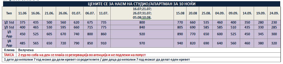 *Понудата е исклучиво за сопствен превоз и нема можност за резервација на автобуски превоз од Македонија!