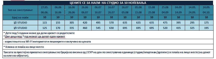 *Понудата е исклучиво за сопствен превоз и нема можност за резервација на автобуски превоз од Македонија!
