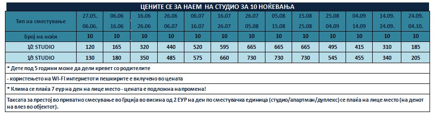 *Понудата е исклучиво за сопствен превоз и нема можност за резервација на автобуски превоз од Македонија!