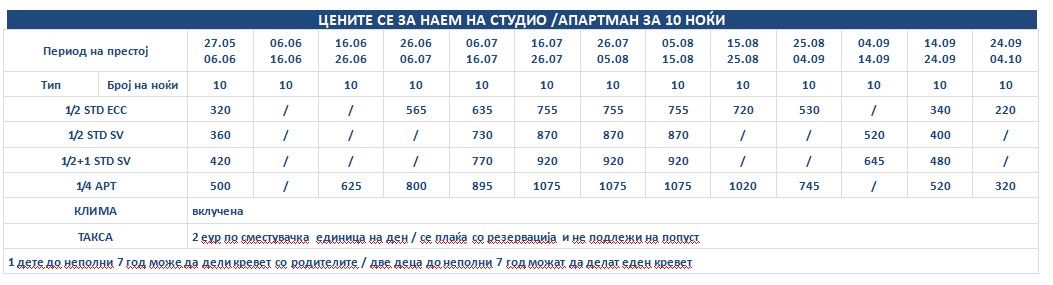 *Понудата е исклучиво за сопствен превоз и нема можност за резервација на автобуски превоз од Македонија!